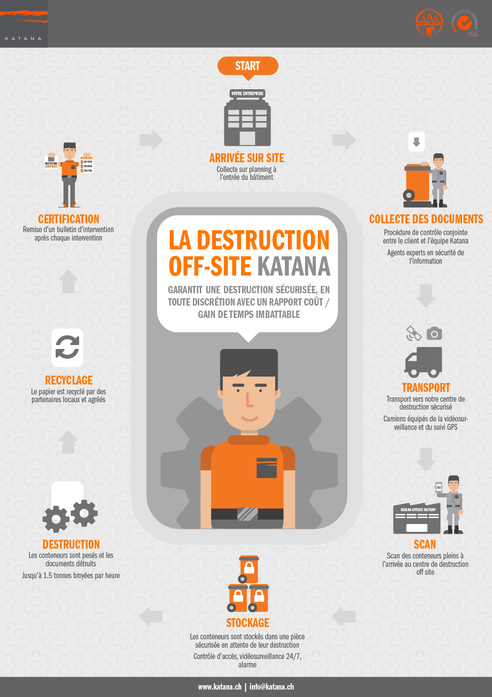 Découvrez les dangers d'une destruction à la main, au bureau avec des petits shreddeurs ainsi que les avantages d'une destruction sécurisée organisée telle que le propose KATANA.